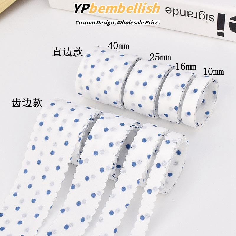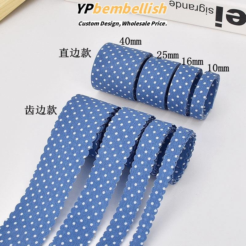 Discover the playful elegance of our custom multi-spec blue polka dot printed fabric ribbons.
