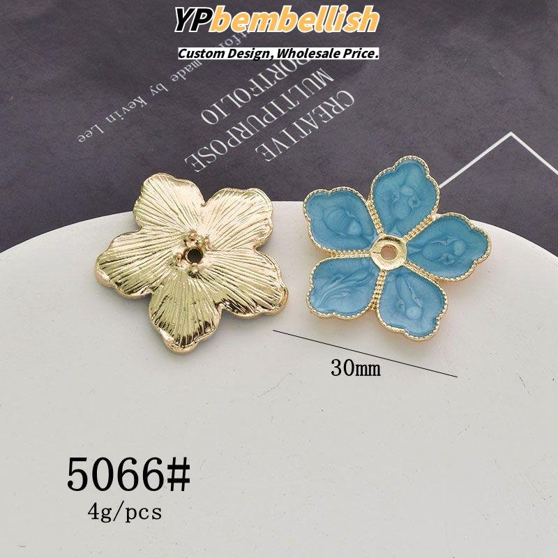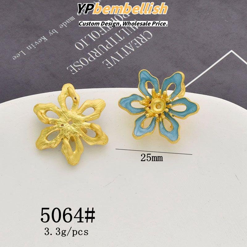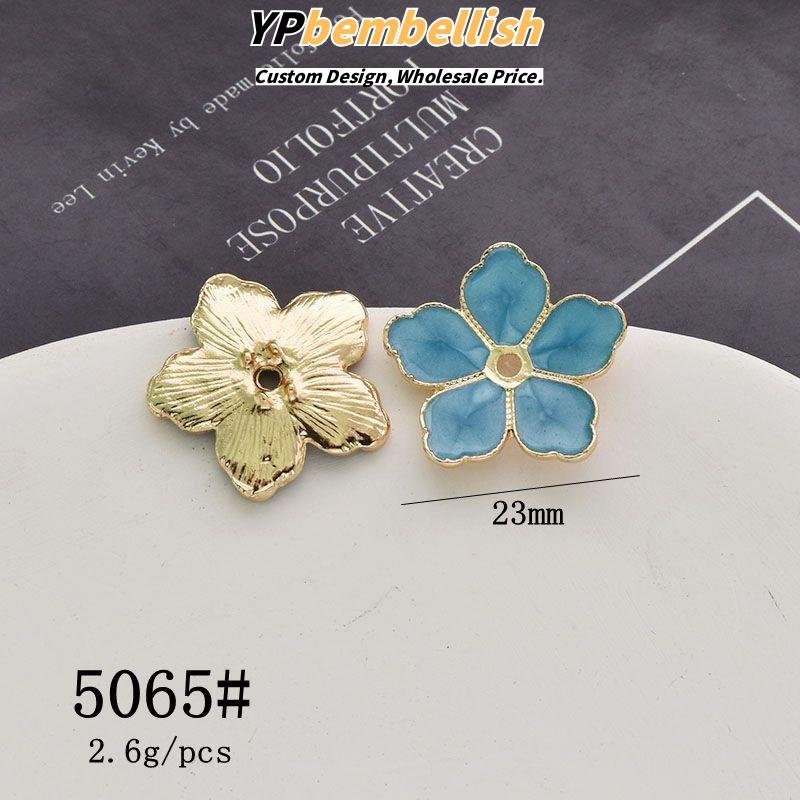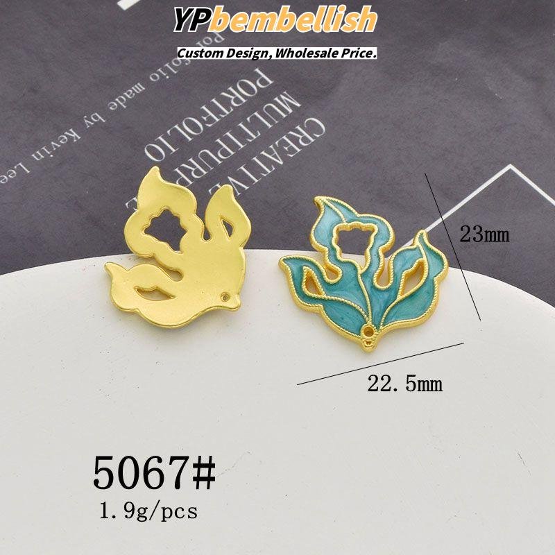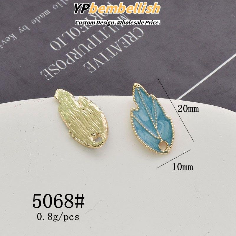 Discover the exotic elegance of our custom oil-drop alloy imitation kingfisher leaf flower petal Chinese knot charms.
